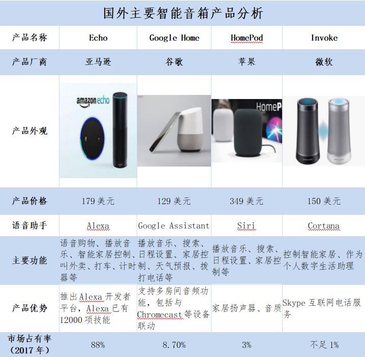三、國內(nèi)外主流智能音箱產(chǎn)品及廠商情況分析