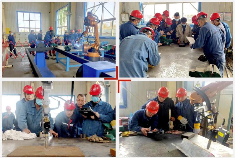 針對焊接機器人的具體操作,信息科技公司派遣專業(yè)技術(shù)人員前往現(xiàn)場開展了詳細(xì)的講解和演示。技術(shù)人員對GR-C操作系統(tǒng)、各類參數(shù)基本設(shè)置、程序編輯示例、程序管理與指令編輯、輸入輸出及PLC功能、程序加載及功能檢測、焊接編程應(yīng)用及安全操作等事項進(jìn)行了一一說明,切實提高了操作人員對不同應(yīng)用場景下各種編程及操作的掌握程度,同時有力保障了操作人員對整體智能焊接系統(tǒng)的操作安全,為后期焊接機器人在實際工作中的靈活應(yīng)用打下堅實基礎(chǔ)。